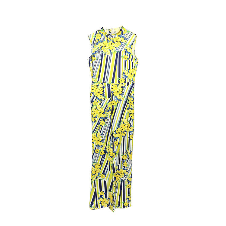 African Women's Jumpsuit Digital Printed High Stretch Sleeveless Wide Leg High Waist Jumpsuit Belt
