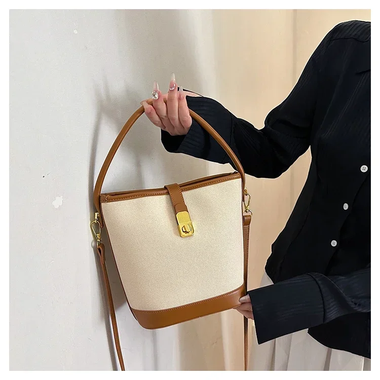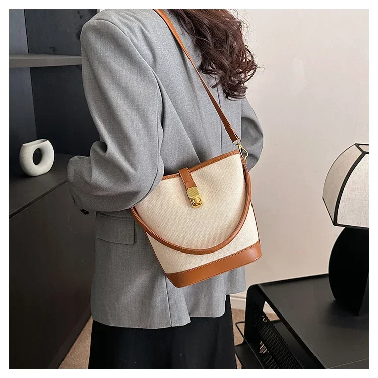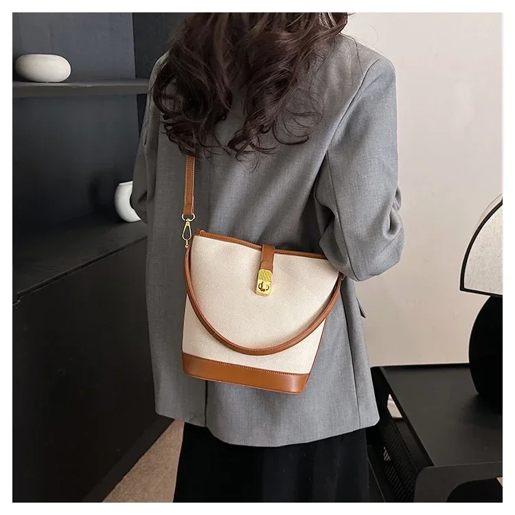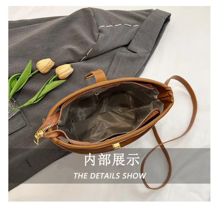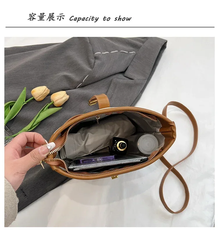 Light Luxury Bucket Shoulder Bag Fashion Casual PU Zipper Buckle Large Capacity Handbags 2025 Hot Sale New Youth Bags for Women