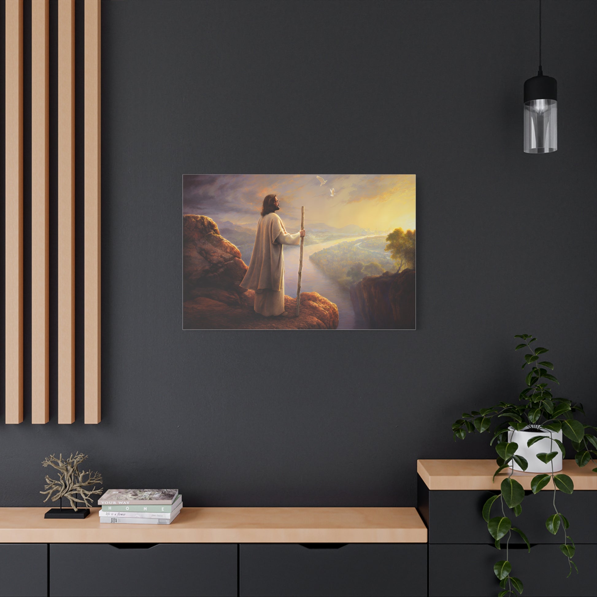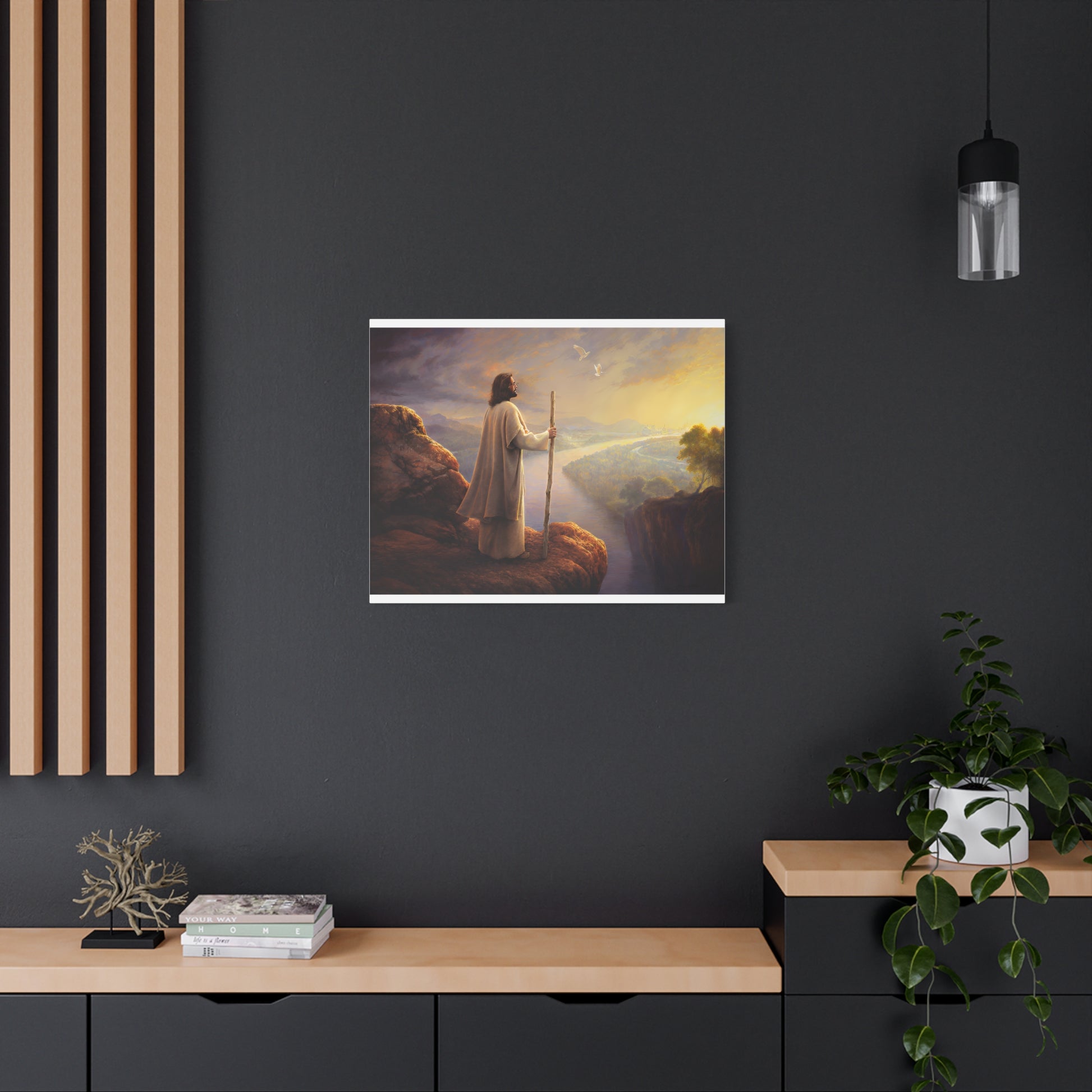 Elevate your space with this inspirational Jesus with Staff scenic canvas art. Perfect for those seeking spiritual and peaceful vibes in their home décor. Ideal for Christians, religious holidays, and spiritual observances.