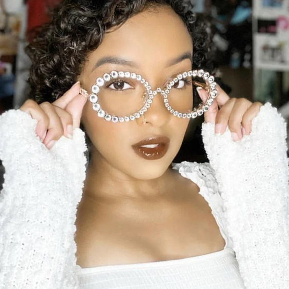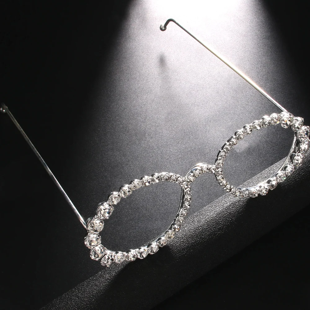 Simple Round Rhinestone Sunglasses Frames No Lenses Rave Accessories Fashion Designer Hollow Alloy Face Jewelry Frames for Women